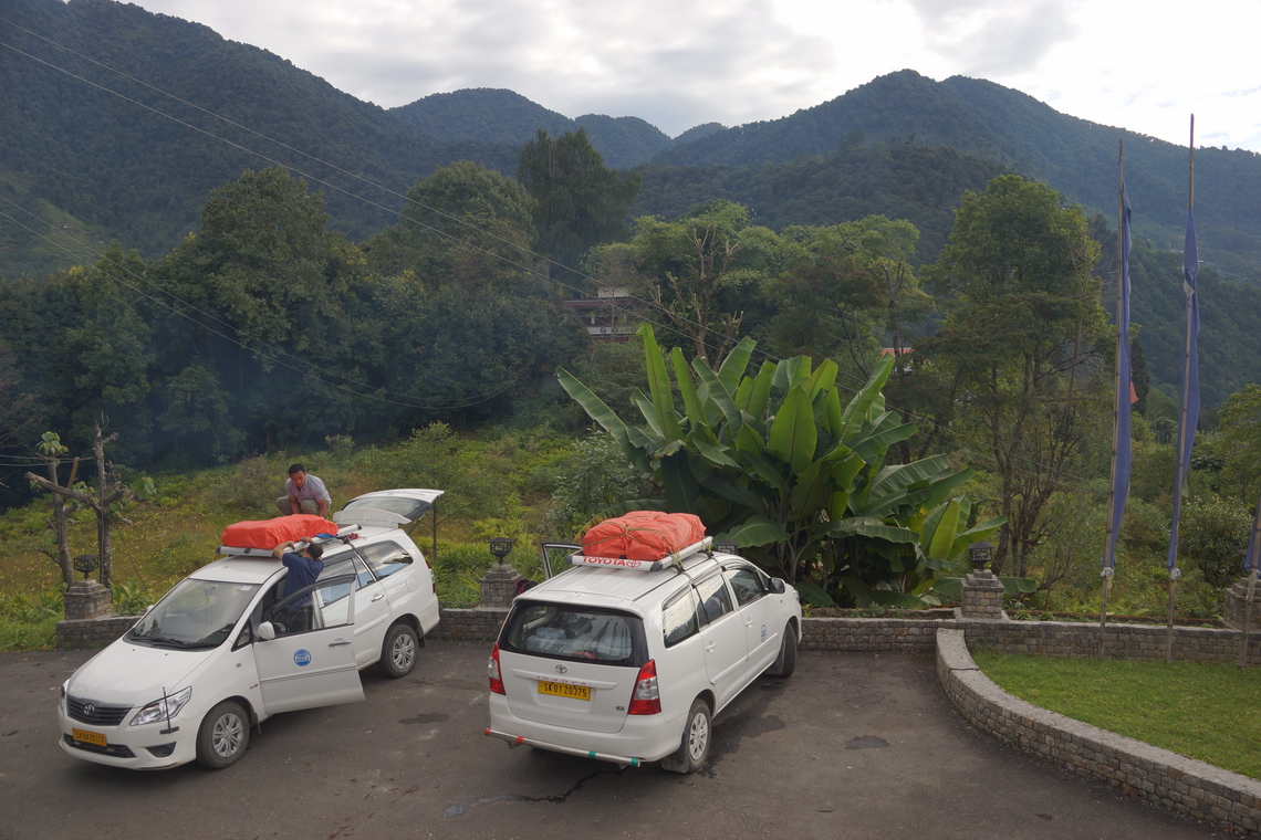 Утро седьмого дня путешествия по Сиккиму встретило нас, на первый взгляд, тревожным рассветом. Но оказалось, что тучи уходят и выглянуло солнце, которое светило целый день. Шоферы начали упаковывать багаж, а мы прощались с уютным домом. Всегда трудно расставаться с Юксомом! Шоферы упаковывали багаж, а мы смотрели вокруг и вспоминали вечерний костер, вкусный завтрак и очень заботливых служащих отеля.